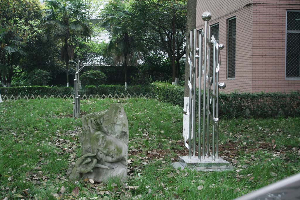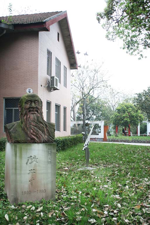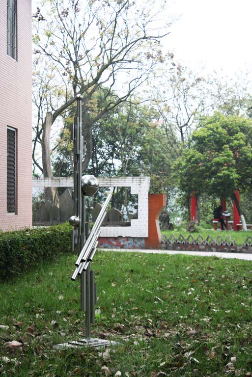 为了进一步美化校园环境,展示办学特色,突出大千的艺术氛围,太阳成集团tyc151cc于4月7日在张大千雕像两旁增设了三座不锈钢雕塑。