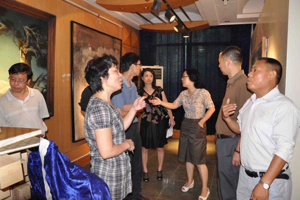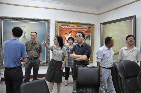 在视察途中,刘董事长细致入微的查看了各画室的布置情况,同时指出,美术公司画室是员工创作的摇篮,公司再穷也不能让员工们没有画室,并对美术公司的画室布置工作作了充分的肯定和高度的评价。