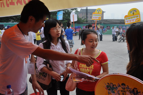 为了让新生和家长们方便快捷的办理新生报到相关手续,公司组织了一支由员工会成员和09级老生为主要力量的庞大服务队伍。他们从早上7点就到各自的岗位待命,以“热情、周到、细致、安全、快捷”的原则,笑脸迎接每一位新生,帮助新生注册、收取新生报到信息表、带领新生办理各项手续、领取卧具、领取军训服装以及帮助新生搬运行李等任务,为每位新生提供全程服务。面对众多新生及家长的咨询,同学们耐心解释,全力做好思想工作。
