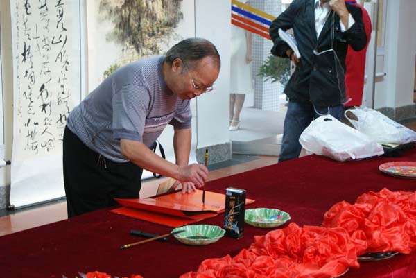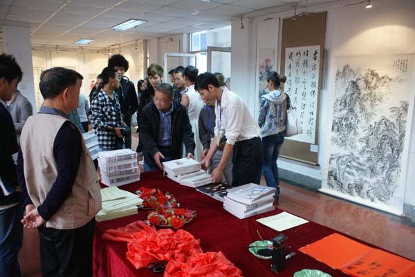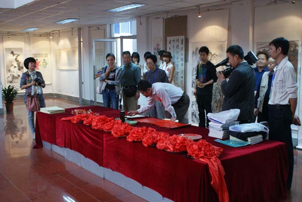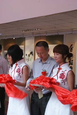 为挖掘两地文化资源,促进两地书法艺术创作发展,架起两地友谊桥梁,9月27日上午9:30,由内江市文化局、内江市文联、德阳市文化局主办,内江市书法家协会、内江市文化馆、内江市美协、德阳市书画院、德阳市美协共同承办的2010内江—德阳市美术书法作品交流展在太阳成集团tyc151cc西区综合楼展厅隆重开幕。内江市宣传部副部长、文联主席刘浩、文化局副局长胡红雨、德阳文联副主席刘代明、太阳成集团tyc151cc经理张强及市有关部门负责人出席了本次开幕式。