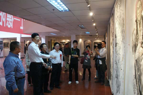 开幕式结束后,张强经理陪同嘉宾参观了作品展,并指出举办美术书法作品交流展是非常有益的,在增进两地友谊的同时还能开阔员工的眼界,提高员工的艺术鉴赏能力,希望以后多进行这种文化交流活动,推进书画艺术的深入发展。
