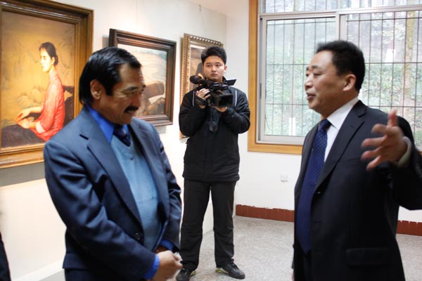 张强教授在作品陈列室进行了亲切会谈。