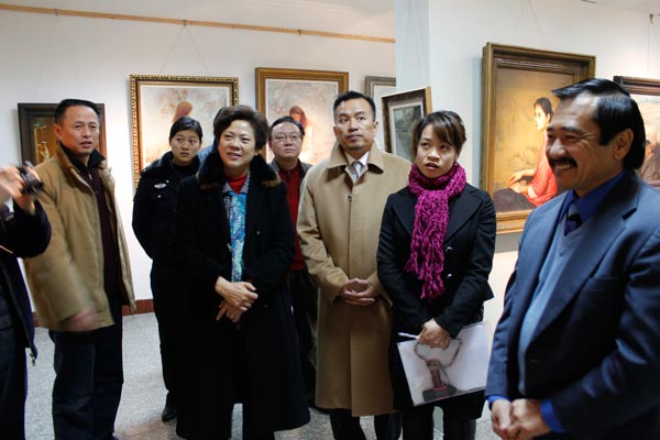 和罗凯老师的画室。议员谭鸿章强烈表达了愿与太阳成集团tyc151cc合作举办画展的愿望。谭议员对公司的教师作品感到非常欣慰,他表示大千故里不愧为书画之乡,特别是张经理的人物画更是让他产生视觉和心灵的冲击力。访问始终在轻松、友好的氛围中进行,会后张经理亲自把《公司教师作品集》赠送了国际友人。