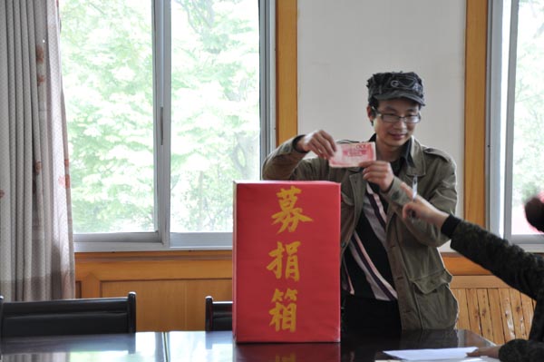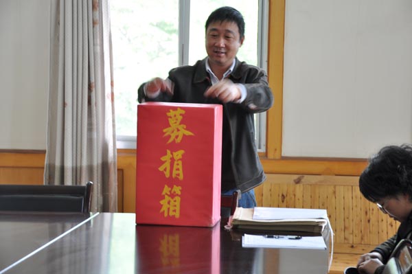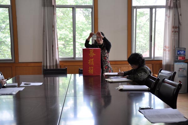 4月26日下午2点30分,太阳成集团tyc151cc情系玉树,大爱无疆——教职工抗震救灾募捐活动在二楼会议室举行,全体教职工参加了募捐活动,活动由党总支书记唐再锋主持。