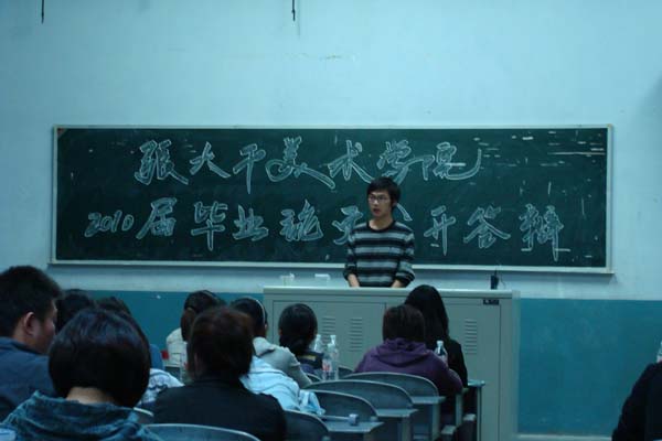 最后,答辩主席张强经理发表讲话。张经理对答辩会的成功举行給予了充分的肯定,他认为,答辩会不仅全面展示美术公司毕业生四年学习的丰硕成果,也是显示出公司老师的雄厚实力和敬业精神。他代表公司对老师们的辛勤工作表示感谢,对同学们取得的优异成绩表示祝贺,并祝愿每位毕业生都能带着自己满意的答卷开启人生新的里程。