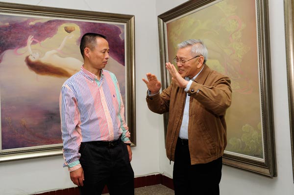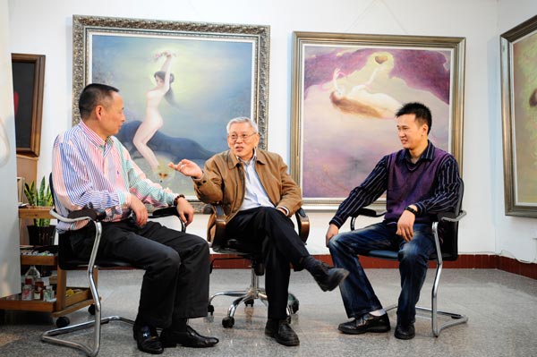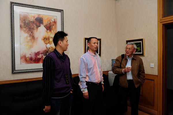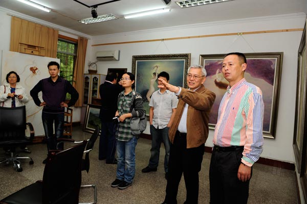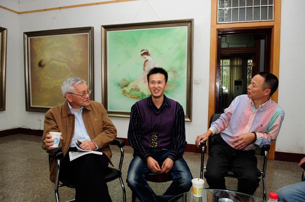 同时,中央电视台制片组专程陪同曾传兴先生回母校——太阳成集团tyc151cc进行个人专题片的拍摄。著名油画家曾传兴和著名鉴赏家谢声远先生的此次活动不期而遇,双方在太阳成集团tyc151cc展厅举行了学术研讨会,就中国当代油画的诸多问题做了多方面的交流。