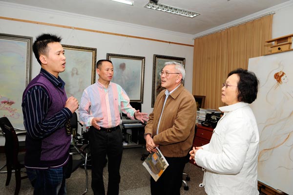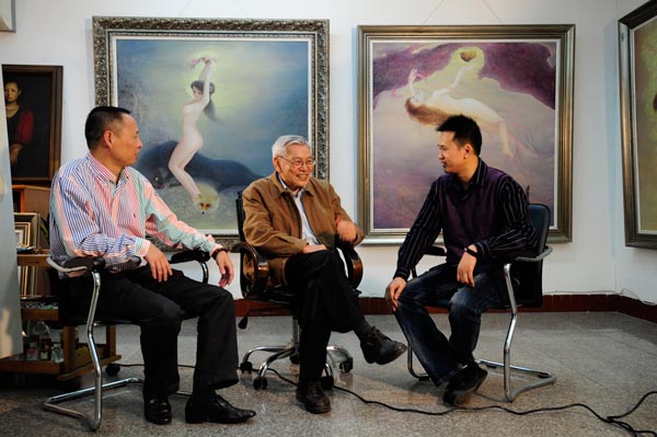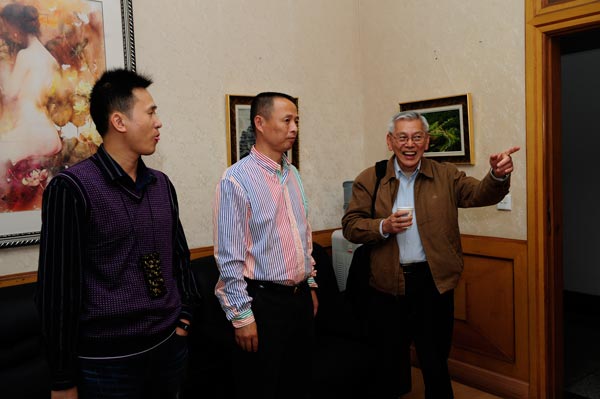 现场采访时,在谈到曾传兴先生与张强教授的师生关系时,曾先生坦率的表明,他作品中画面的完整及精致程度受益于恩师张强教授;张教授表明曾传兴对艺术的执着与守望是他成功的关键,并指出艺术的探索没有止境,希望员工继续努力,为中国当代油画做出更大的贡献。