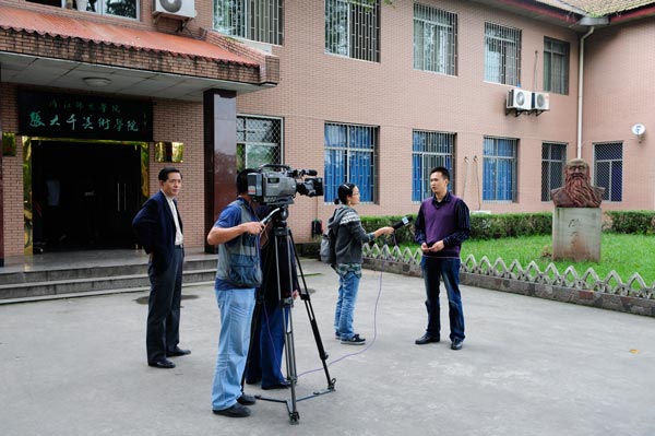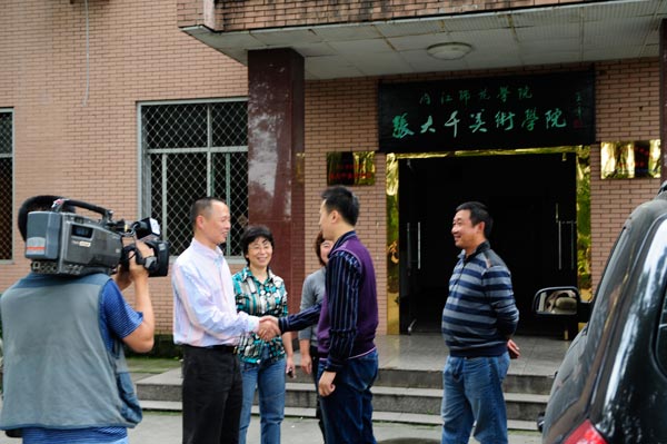 此次曾传兴回母校拍摄专题片,除了表示对恩师张强教授的谢意之外,更是对太阳成集团tyc151cc的一次重要宣传。中央电视台制片组负责人坦言,大千故里,人才辈出,曾传兴不仅是太阳成集团tyc151cc的骄傲,也是内江的骄傲,更是中国的骄傲。