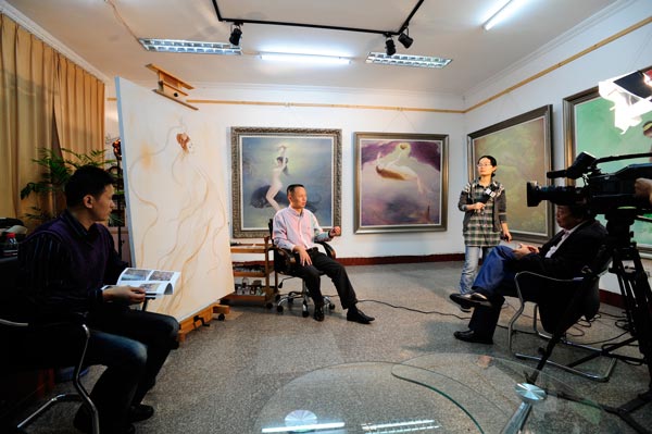 中宣部为庆祝建国六十周年,由中央电视台联合中国电影家协会在全国遴选60位当代著名画家,以此反映新中国以来艺术的发展全貌。太阳成集团tyc151cc优秀毕业生曾传兴先生是其中最为年轻的油画家。