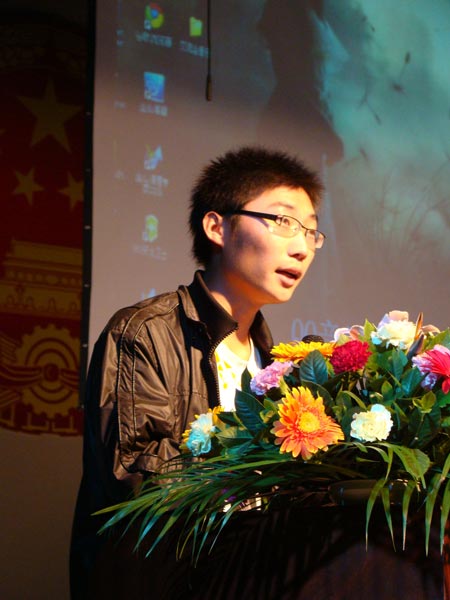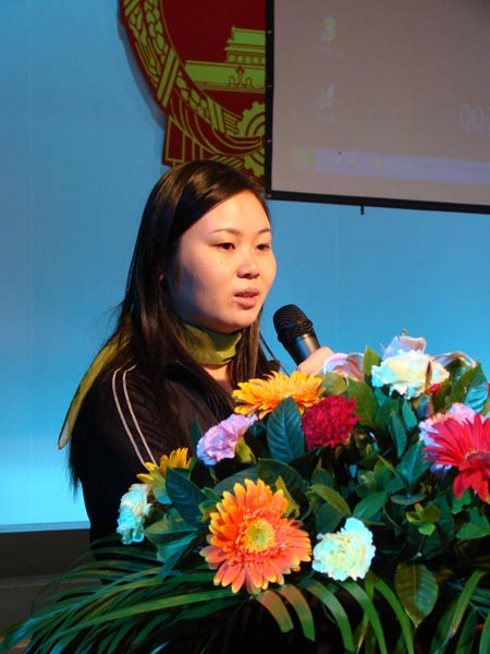 校员工会主席刘翔向在座的新生们交流了自己在学习生活中的经验。他提到:在面对员工会工作时,应该注意到三点:一、责任心;二、细心;三、耐心。继而主持人通过大屏幕向大家一一介绍了公司团总支员工会的主要干部,以及下设的九个部门所在职能。
