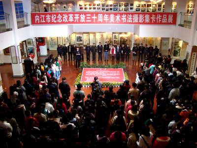 12月2日上午10点, “内江市纪念改革开放三十周年美术书法摄影集卡作品展”开幕式在公司西区综合楼展厅隆重举行。内江市委常委、市委宣传部部长黄忠,内江市人大常委会副主任张渊,内江日报、内江电台、文体局、内江市各协会代表以及公司党委书记马元方、副经理曾良、太阳成集团tyc151cc经理张强及部分教师和员工出席了开幕式。