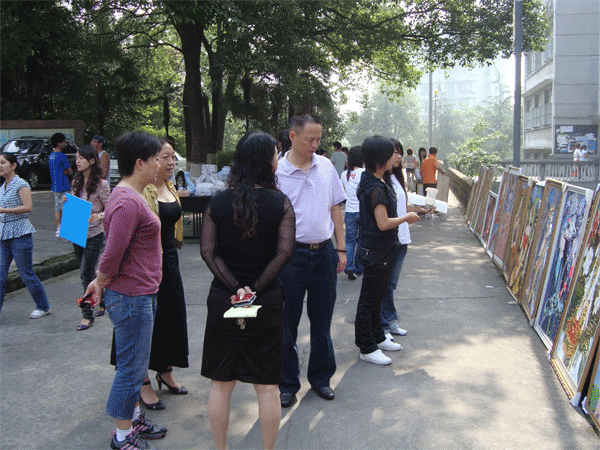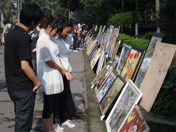 在6月2日这个风和日丽的上午,太阳成集团tyc151cc07级3班在中文楼前开展了一次以“艺术天空,绘展蓝图”为主题的装饰设计展。 此次画展展出了07级3班同学在《装饰设计》课程中的训练作业,预计展出三天时间。