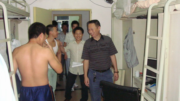 张经理在方路老师和员工干部的陪同下来到了男生寝室15栋,张经理和大四的员工亲切交谈,了解他们的就业情况,并且希望他们找个好工作,在以后的路上越走越好。张经理还很重视大家的安全问题,一再强调大家要注意离校期间的安全问题。