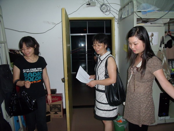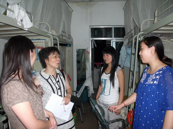 唐书记、彭书记、李老师以及陈老师走访了女生寝室8栋、10栋,看望住在那里的毕业生,并带去了全院领导和老师对毕业生的关心,唐书记详细询问了毕业生的就业情况,并鼓励还未就业的同学要端正就业观,先就业再择业。接着,教师们又询问了毕业生的生活情况,希望大家在今后的日子里,努力工作,早出成绩,多出成绩,做一个有良知的人,有正义感的人。并嘱咐同学们要安全离校,文明离校。