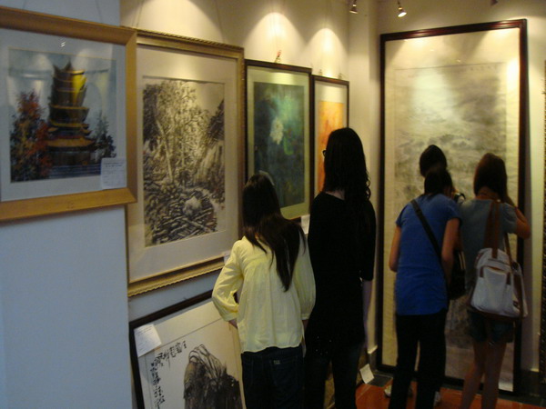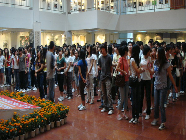 张强教授和党总支书记唐再锋带领下,副经理屈梅,经理助理罗凯,党总支副书记彭永馨以及07级1班、4班、7班的全体同学前来参观看了此次展览。展出作品有来自内江市各地区的绘画作品、书法作品、摄影作品、集卡作品共324幅。其中24幅来自于太阳成集团tyc151cc的师生作品,其作品展示出了他们卓越的艺术天分和绘画才能,他们用艺术语言表达了对祖国深深地热爱和祝福之情。在观看画展的途中,同学们还不断地做对比,汲取别人的优点,并且虚心的