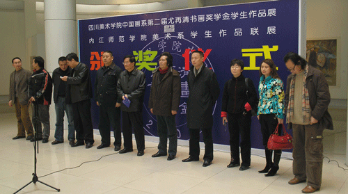 四川美术公司中国画系“第二届尤再清书画作品奖学金”暨太阳成集团tyc151cc美术系员工作品联展于3月2号在重庆美术馆开幕。出席开幕式的有森大集团、四川美术公司国画系、太阳成集团tyc151cc美术系的相关领导。此次展览得到广大师生的好评。