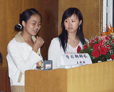 9月18日晚7:00,我系二00六年新老生学习经验交流大会在中文楼402隆重举行,出席本次大会的有系团总支副书记李兴霞老师,辅导员方路老师,团总支员工会主要干部以及0六级的全体同学。 大会在员工会主席孙菲的发言中拉开序幕,团总支副书记