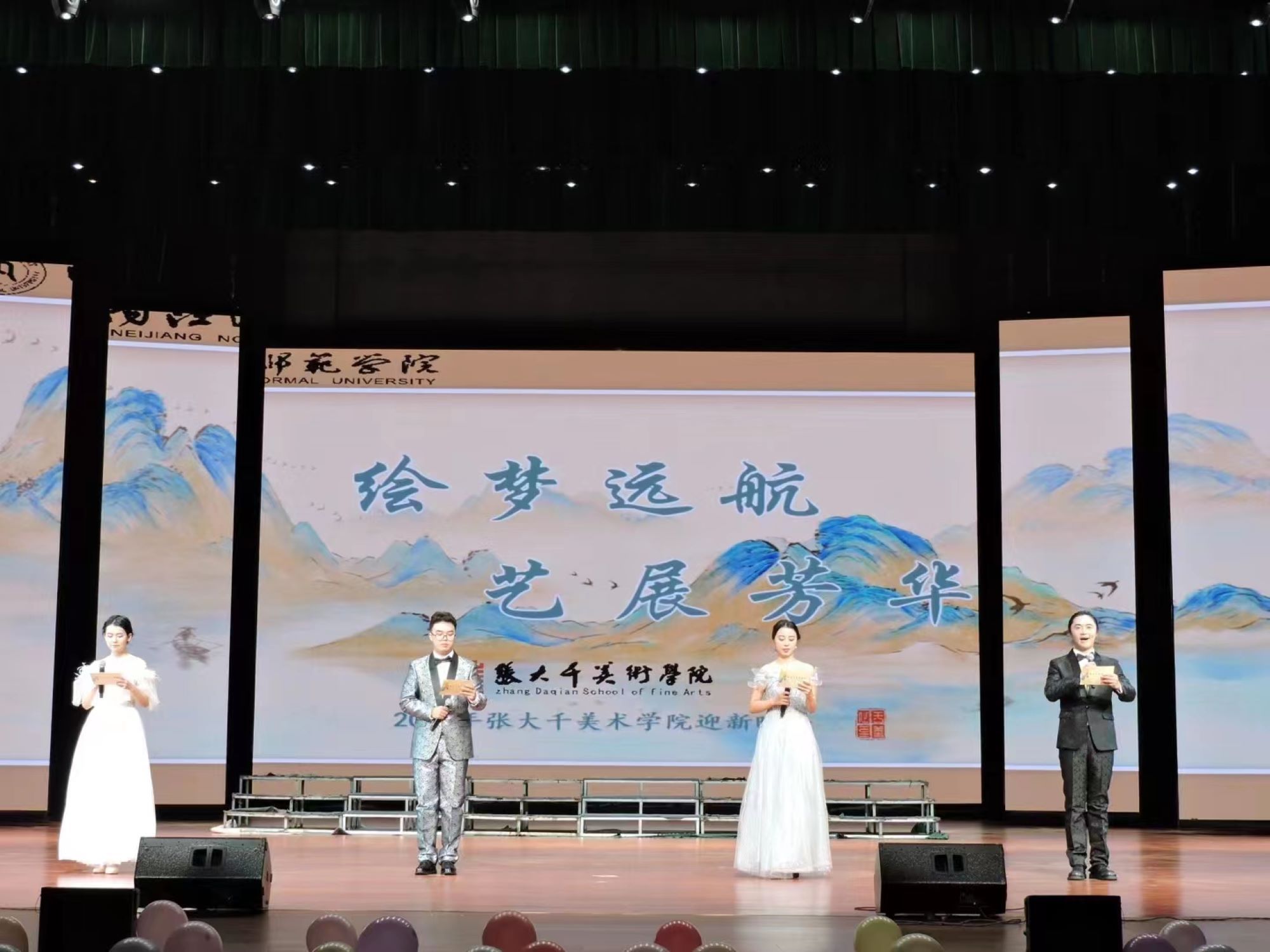 青春如初春之萌动,如朝日之喷薄。为欢迎2023级新同学和迎接新年的到来,展示公司美育成果,12月23日在苌弘剧院举办了“绘梦远航,艺展芳华”——太阳成集团tyc151cc美育成果展示暨2023年迎新晚会。出席本次晚会的领导和嘉宾有公司党委书记彭永馨、经理罗凯、副经理罗真、公司部分教师、各兄弟公司学工办老师、团总支员工会的同学及全体2023级新生。