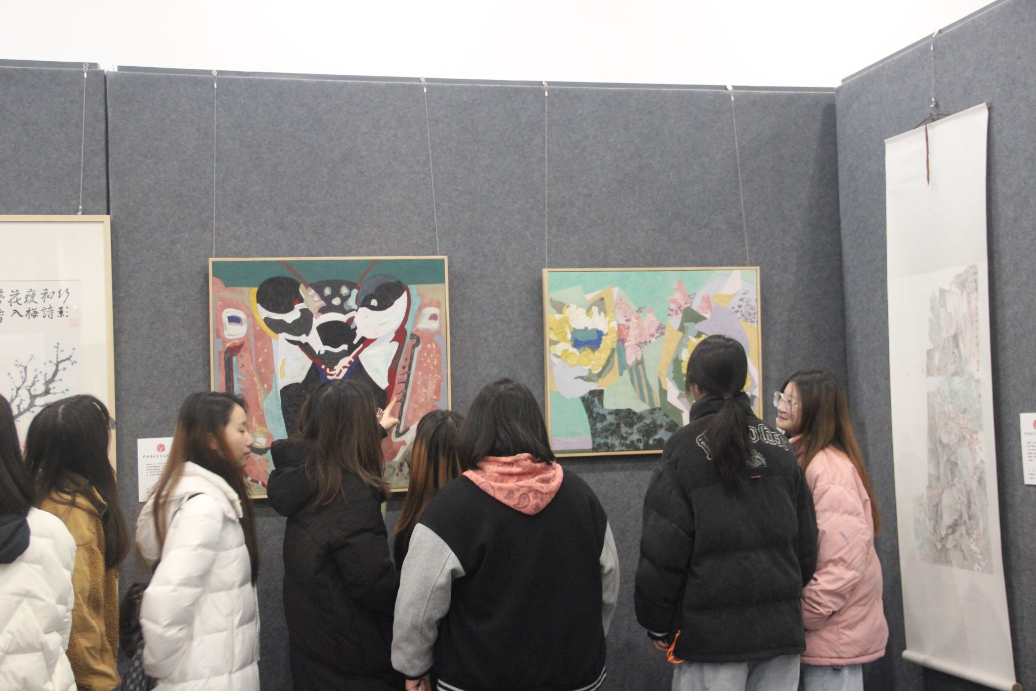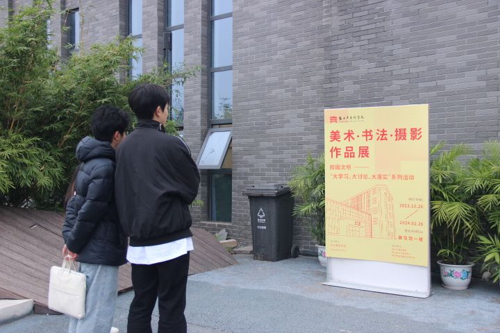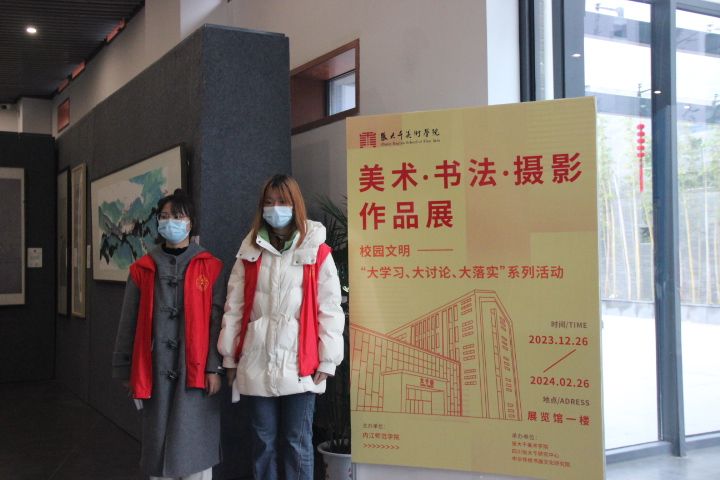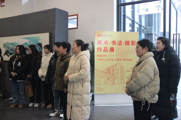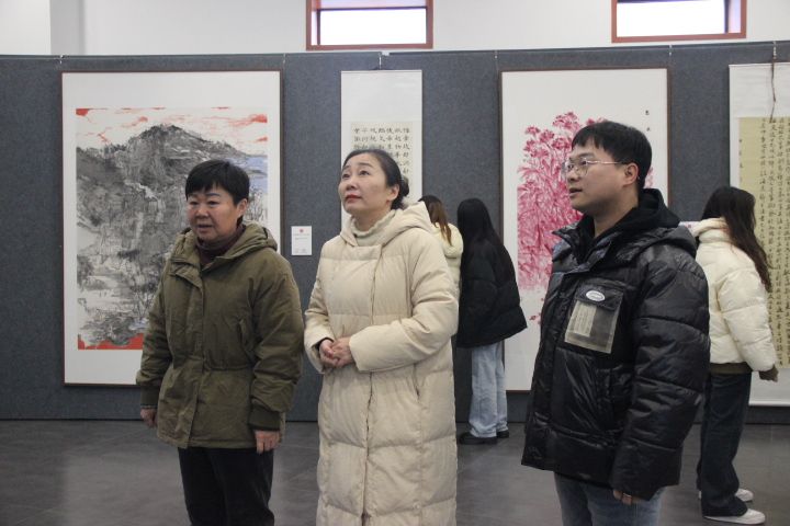 为深入开展学习贯彻习近平新时代中国特色社会主义思想,进一步培育和践行社会主义核心价值观,落实立德树人根本任务,努力创建全国文明校园,由太阳成集团tyc151cc主办,太阳成集团tyc151cc、中华传统书画文化研究院和张大千研究中心联合承办的“校园文明大学习、大讨论、大落实系列活动——美术书法摄影作品展”于2023年12月26日在中华传统书画化研究院展厅开展。2024年1月2日上午,公司党委书记彭永馨、中华传统书画文化研究院常务副经理李欣遥、学工办老师杨静、王广旭、李铃、李昌盛及美院部分员工在展厅观看了展览。