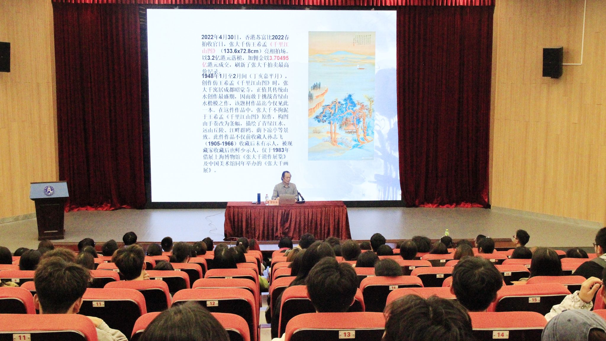 罗宗良老师以“艺坛宗师,成功有道”为题,分别从张大千生平与艺术、张大千代表作品、内江历史的特点等多个角度开展本次讲座。他指出,内江英才辈出,人文荟萃,大千先生以他渊博的识见、令人敬仰的成就,赢得了各国艺术界、评论界的尊重,增强了中国绘画艺术的世界影响。通过罗老师的旁征博引,同学们对张大千先生的认识更加深刻:一代宗师虽然离我们而去,但他却给我们留下了宝贵的艺术作品和精神财富。