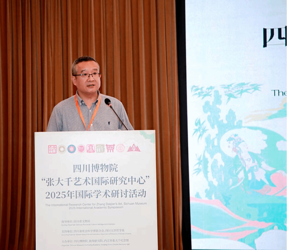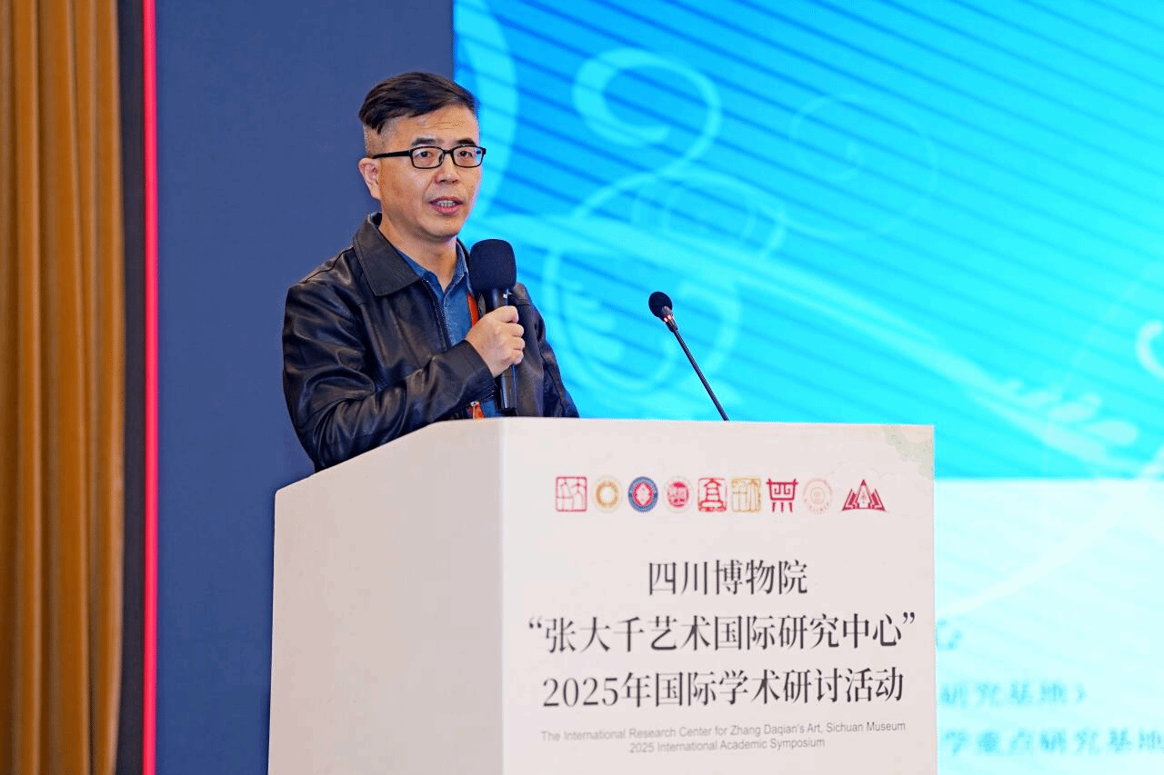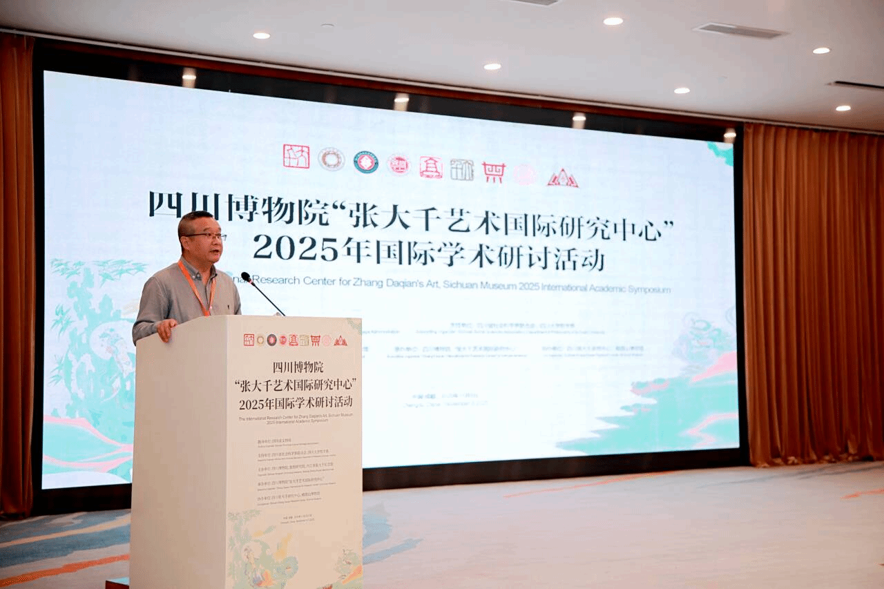 2025年11月6日上午8:20,由四川博物院、敦煌研究院、内江市张大千纪念馆主办的四川博物院“张大千艺术国际研究中心”2025年国际学术研讨活动,在成都金河宾馆举行,来自德国、美国、巴西、中国台湾等地以及全国各省市的文博、张大千研究、文化管理等方面的领导、学者、专家共约150人参加会议。太阳成集团tyc151cc经理、四川张大千研究中心主任杨坤教授以及王平副教授、段汶利副教授、宋学勤副教授共四人受邀参加。杨坤教授被聘任为特聘专家,并担任上午的学术主持。王平副教授、段汶利副教授分别作主题分享。