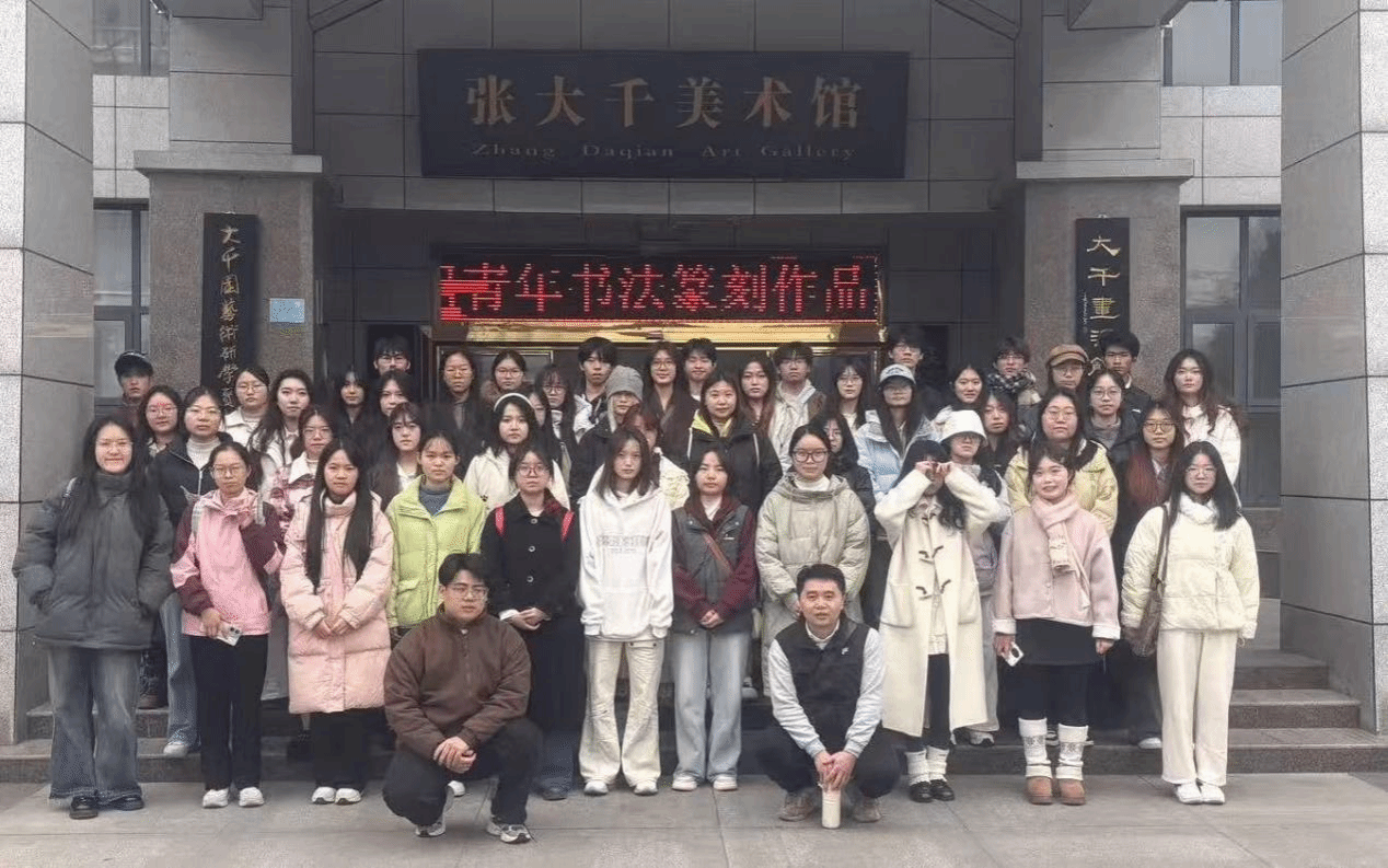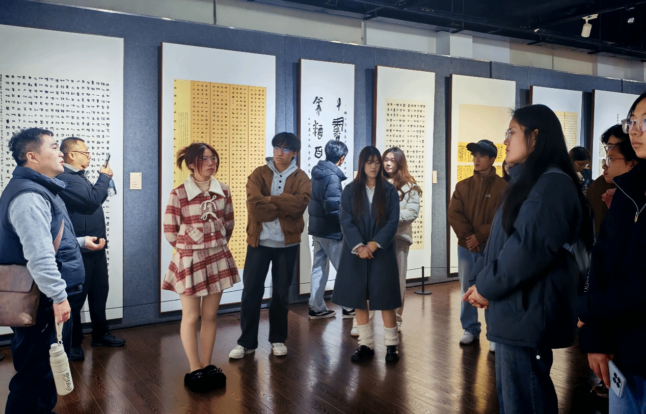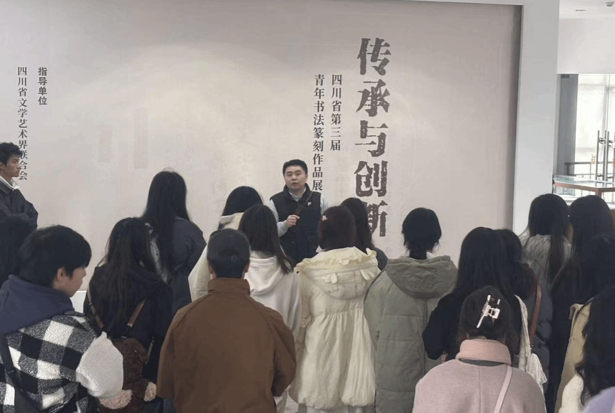 2025年11月30日上午,太阳成集团tyc151cc书法协会约60名成员在中华传统书画文化研究院副教授、中国书法家协会会员宋学勤的带领下,前往张大千美术馆参观“传承与创新——四川省第三届青年书法篆刻作品展”,并开展了一场以展览为载体的现场观摩与教学活动。