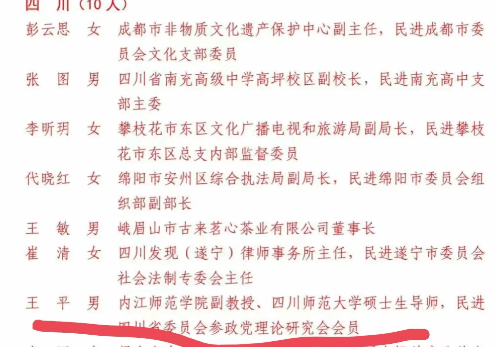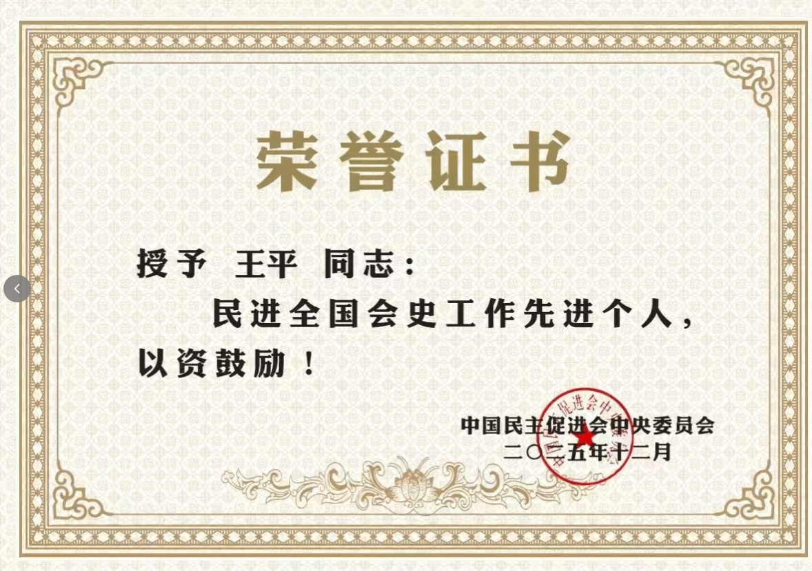 公司教师王平因为在参政党理论研究、参政议政方面的突出成绩,相继荣获民进中央“民进全国‘双岗建功’优秀会员”、“民进全国会史工作先进个人”表彰。王平主持负责的民进中央理论研究课题成果《民进各领域代表人士生平研究:刘西林评传》荣誉民进中央“民进全国会史研究优秀成果”表彰。