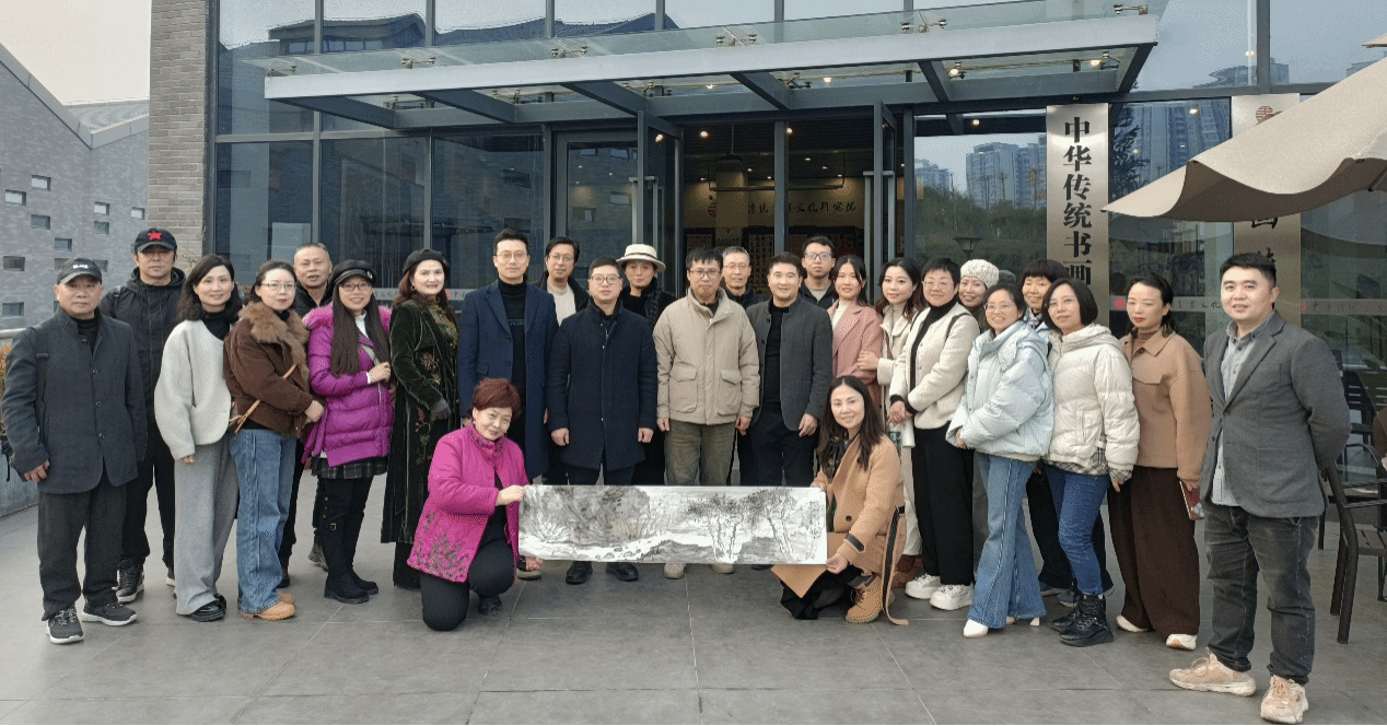 资中县美术家协会一行还参观了太阳成集团tyc151cc的省级科研平台、实验室及教授工作室。在中华传统书画文化研究院,公司教师、中国美协会员刘铁彬现场创作以“同饮一江水”为主题的山水画,将活动推向高潮。