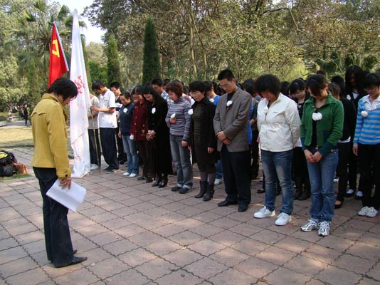 15:20,在美术学党总支书记院唐再锋,副经理屈梅,党总支副书记彭永馨及辅导员老师的带领下,美术公司一行70余名党员到达喻培伦大将军纪念馆,在馆外纪念碑前列队肃立。纪念活动由辅导员陈慧老师主持,她首先向党员们简要介绍了喻培伦大将军的生平事迹。随后,师生们先后举行了向烈士默哀、献花和重温入党誓词、唱国歌等活动。唐书记希望所有党员履行好党员的义务,学习喻培伦大将军的爱党爱国精神,在各方面起好模范带头作用。