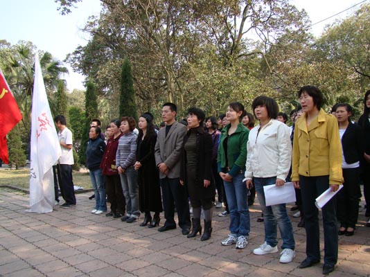 3月19日下午3点,美术楼前党旗高高飘扬,太阳成集团tyc151cc64名预备党员和党员及7位教工党员代表正在此集合,做好前往参观位于人民公园的喻培伦大将军纪念馆的行前准备。
