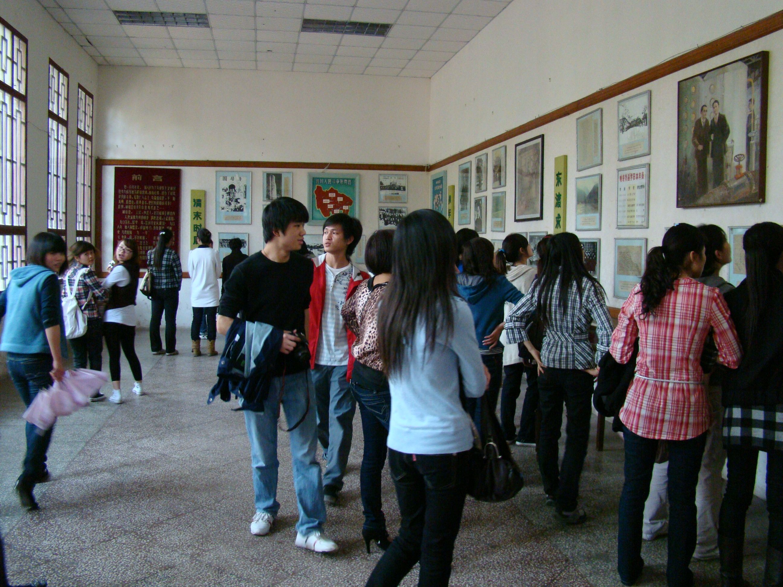 馆外纪念活动结束后,师生们开始参观纪念馆。馆内陈列了喻培伦大将军短暂人生中少年立志,东渡求索,投身革命,碧血黄花岗等各阶段的主要事件的一系列图文和珍贵遗物。整个过程中 ,师生们始终怀着一份崇敬与肃穆的心情,仔细观看着每一行文字和每一幅图片,详细了解了喻培伦大将军为寻求救国救民的道路,不断进行探索和斗争直至英勇献身的不朽历史。师生们被喻培伦大将军高尚的爱国主义情怀所深深触动,久久地停留在陈列室内。面积不大的两间陈列室,老师和同学们却足足参观了1个多小时。师生们受到了一次生动的革命传统教育和爱国主义教育,增强了党性修养。