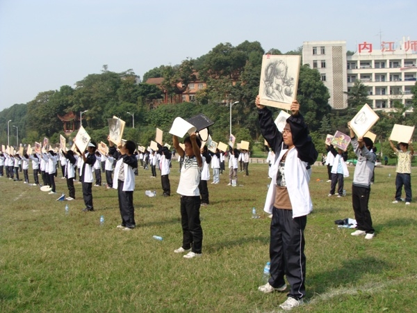 今年11月中旬,内江市第三届运动会将在我市召开。为展示大千故里及美术公司的风采,根据市政府的统一安排,公司将承担运动会开幕式大型团体操节目的表演工作。此次团体操的排练,时间紧,任务重,全体参训师生克服种种困难,经过近半个月的紧张排练,团体操已基本成型。