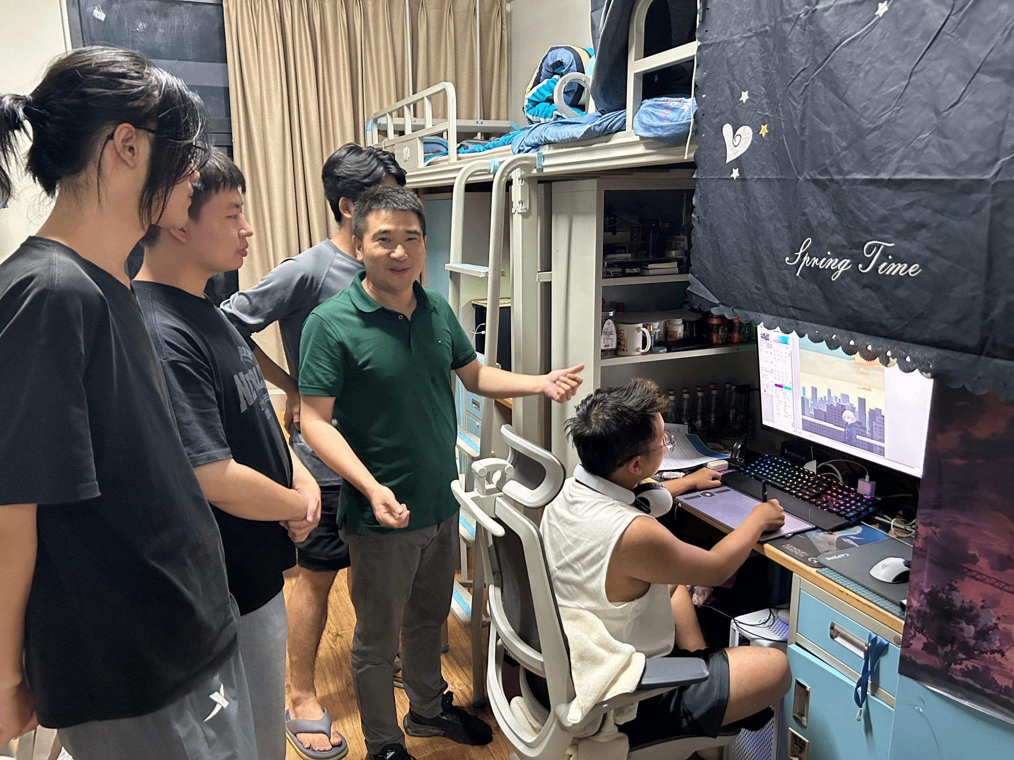 在互动交流环节,同学们对学习生活中存在的问题和困难与高副经理进行交流讨论,高经理认真听取了同学们的问题和困难,对同学们在绘画技巧方面的问题,高经理进行了现场指导。对生活和学习上有困难的同学们提供了诸多建议和解决办法。为帮助同学们在学业和就业上树立远大目标,高经理以自身经历进行经验分享,此举极大的激发了同学们的学习热情和奋斗精神,现场交流气氛非常热烈。