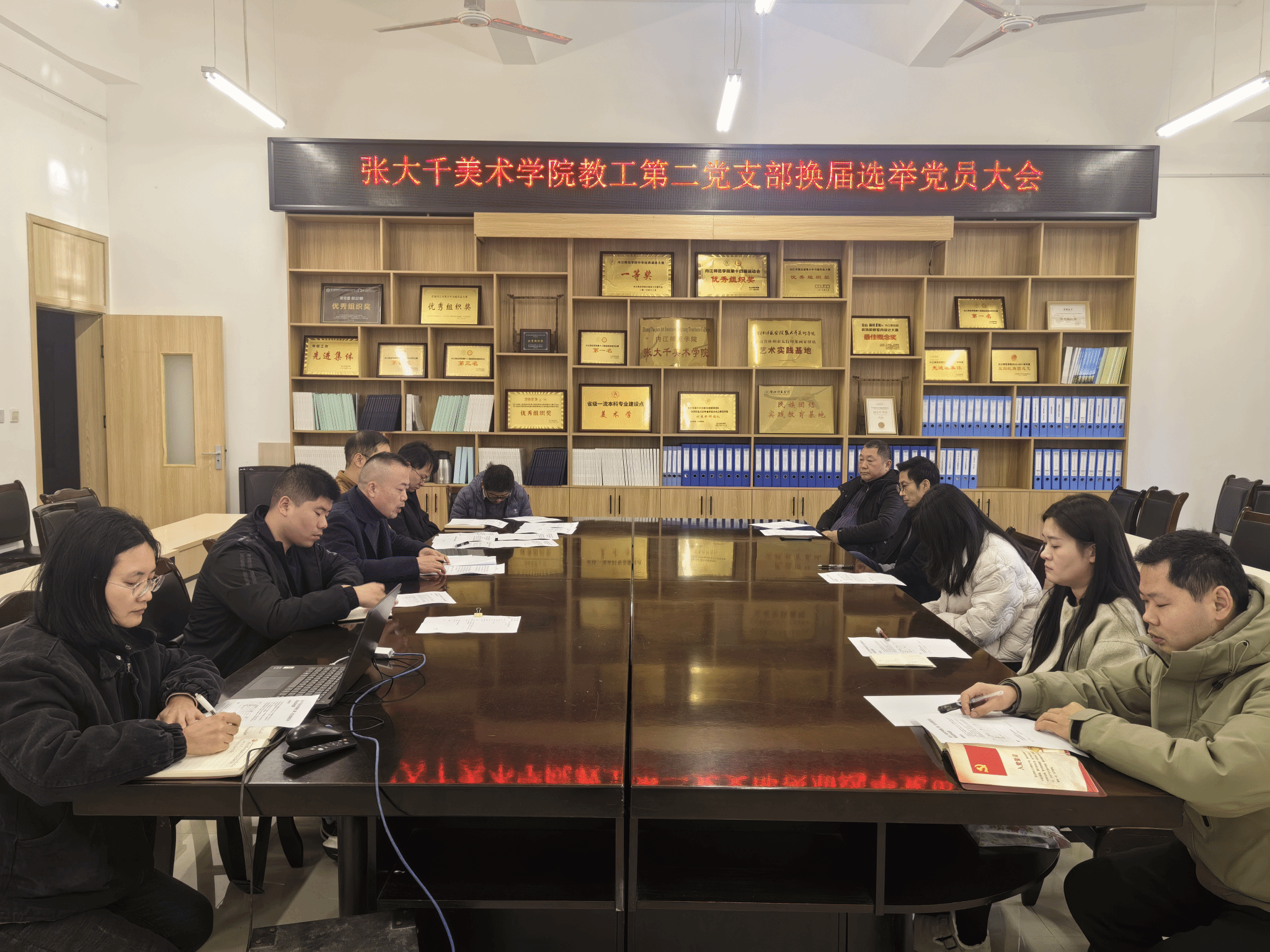 大会在庄严的国歌声中开始。杨政代表上届支部委员会作工作报告,全面回顾了过去三年来支部在政治建设、文化传承、实践服务等方面取得的工作成效。报告经全体党员审议并一致通过。