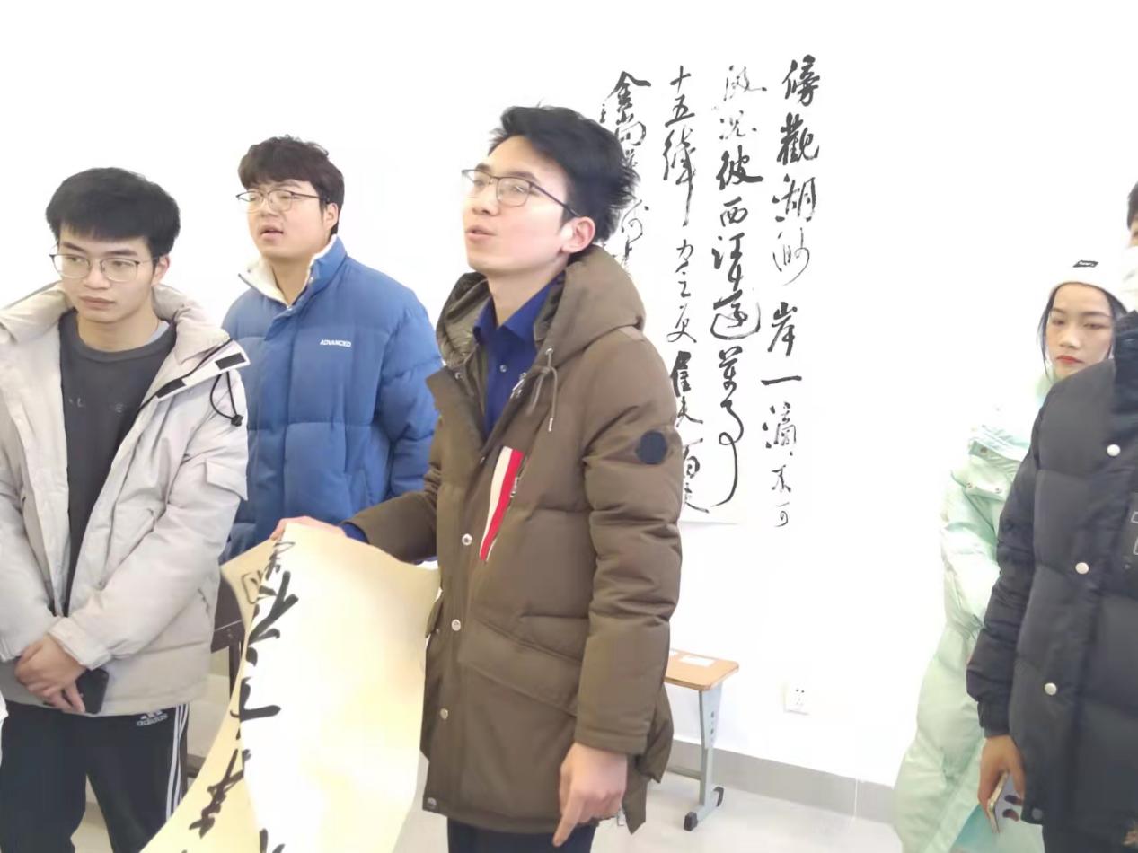 2021年12月28日,书法教研室刘智强老师为同学们看稿。明确了打造作品的方向,并现场示范了十来种可参考的章法,要求同学们积极准备开学即将进行的四川省高校书法师生作品展。