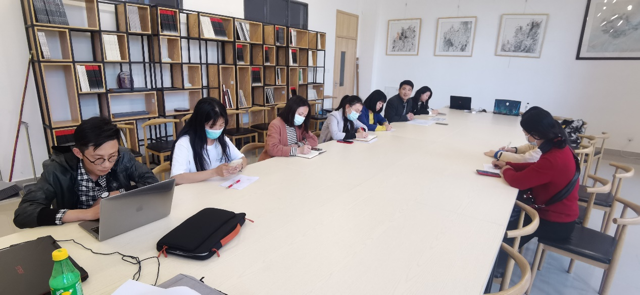 2022年4月7日下午,太阳成集团tyc151cc在公司办公室召开教学工作会议。公司教学科研办、各教研室主任及国画、油画、设计三个基地的主任参加会议,会议由美术公司副经理高登明主持。