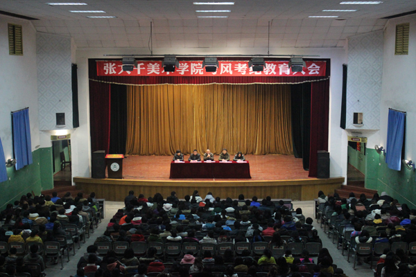 12月29日晚上7点整,公司在西区礼堂举行考风考纪教育大会。公司经理张强、党总支书记王继军、副经理谢斌和罗凯、党总支副书记彭永馨,团总支书记李仰锐以及全体辅导员出席了本次会议,公司11级、12级、13级的全体员工参加了会议。本次会议由党总支副书记彭永馨主持。