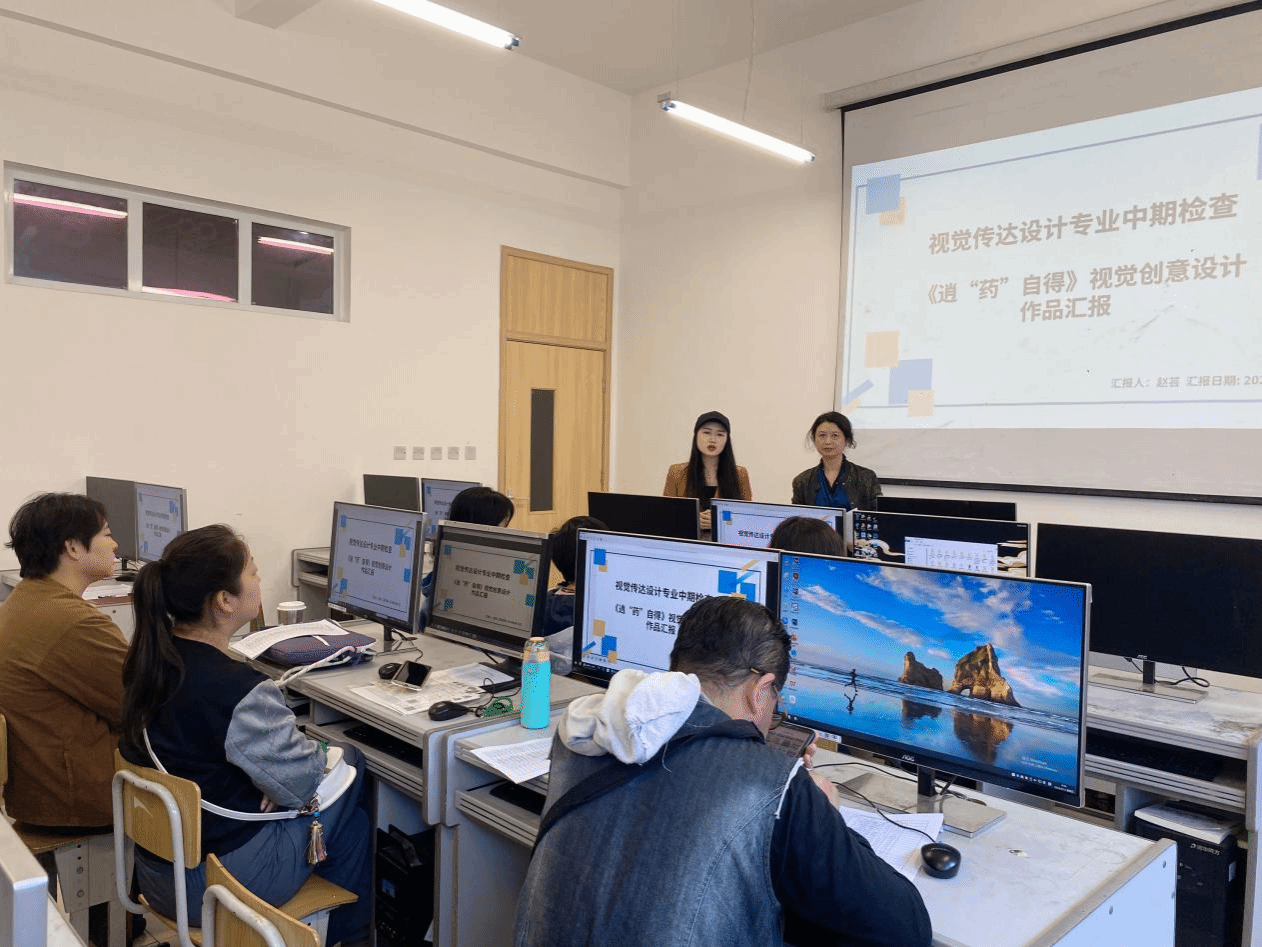 毕业设计(论文)(以下简称“毕设”)是本科教学中的核心实践环节,为确保视觉传达设计专业2024年度毕设工作顺利开展,及时了解和掌握员工毕设的进展情况,4月19日,视觉传达设计教研室全体老师,对2024届本科毕设进行了中期检查工作。