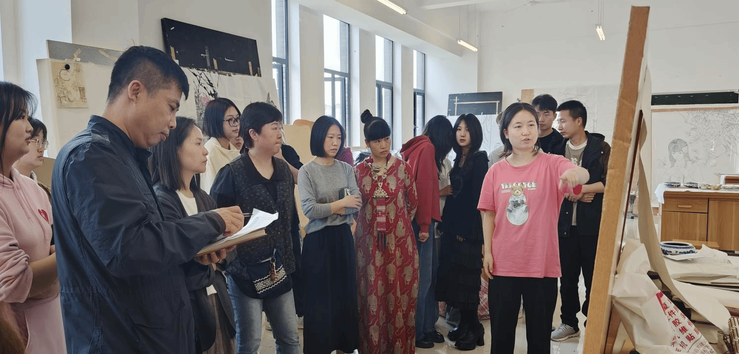 为保障2024届美术学专业中国画方向员工毕业创作及创作说明的顺利完成,2024年4月18日下午,中国画教研室开展了本届毕业创作中期检查工作。国画教研室全体老师共同检查了中国画方向员工的创作情况。在检查过程中,老师们认真听取了毕业生的创作想法和思路,并针对创作内容、构图、材料、表现形式等情况提出了具体的修改建议和意见。