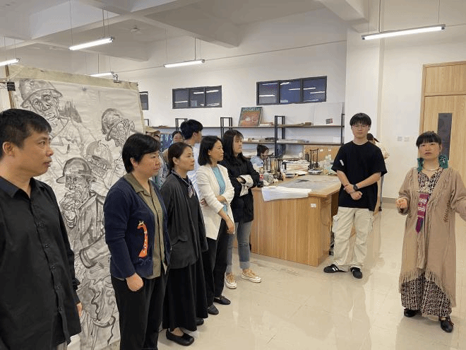 本次观摩课由中国画教研室王琴慧老师为2021级1班美术学中国画专业方向班讲授《人物画创作》课,本课以人物画为主线,带领员工进行多种形式的创作语言与表现技法的大胆探索,按照“学—思—练—悟—评”的教学思路,引导员工完成人物画创作。教学中灵活应用多种教学手段进行学习、互动、评价。观摩课后,中国画教研室教师开展现场教学研讨活动,老师们结合自身课程教学实际,围绕教学理念、课程设计、教学方式、教学资源应用、课堂组织管理等方面进行了深入交流。