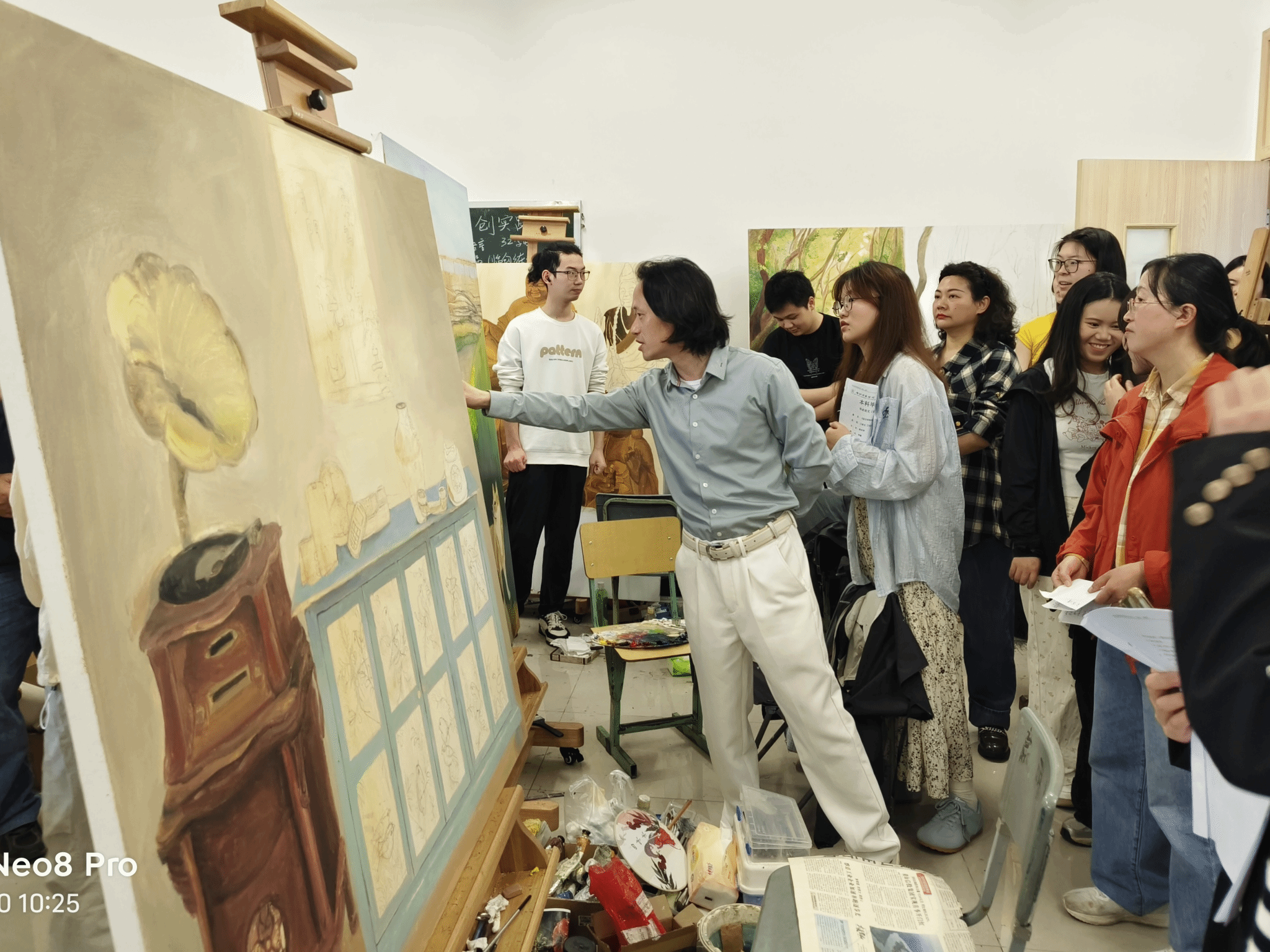 为保障2025届毕业创作说明及毕业创作顺利进行,油画教研室于4月10日上午开展了创作说明及作品中期检查。油画教研室的老师们对同学们的毕业创作说明和创作提出了宝贵的建议和意见。再次强调了撰写毕业创作说明的重要时间节点以及对应的任务,要求同学们在创作过程中认真对待、全力以赴,同时做好素描稿、色稿、步骤图的拍照存档,在写创作说明时必须图文并茂,以提高毕业创作说明的质量。
