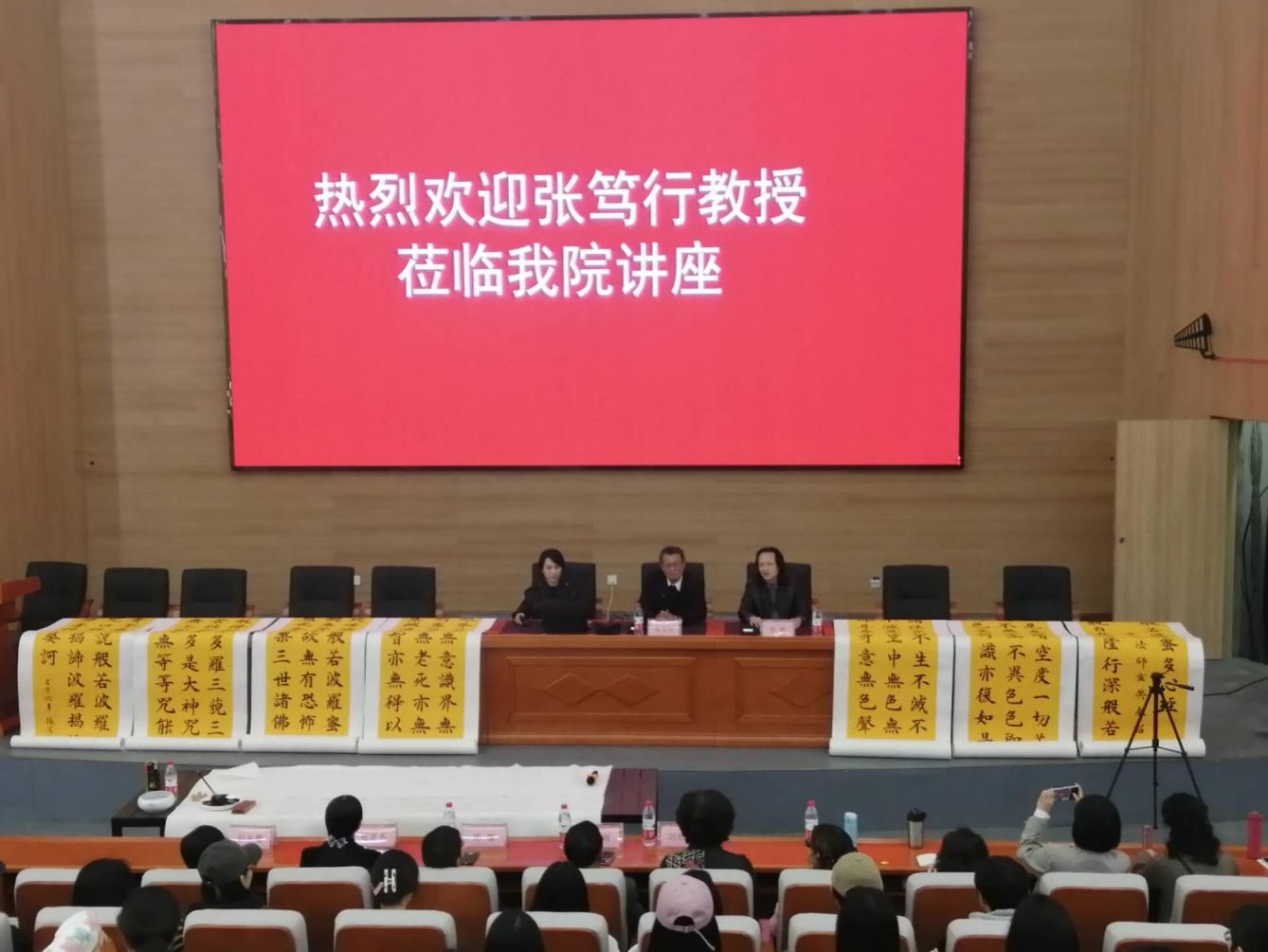 张笃行教授在讲座中首先讲到中华民族是有血有肉,非常重感情的,字有刚柔形,写成一篇著作,就会形成章法,我们做为汉字的继承者,前途是光明的。