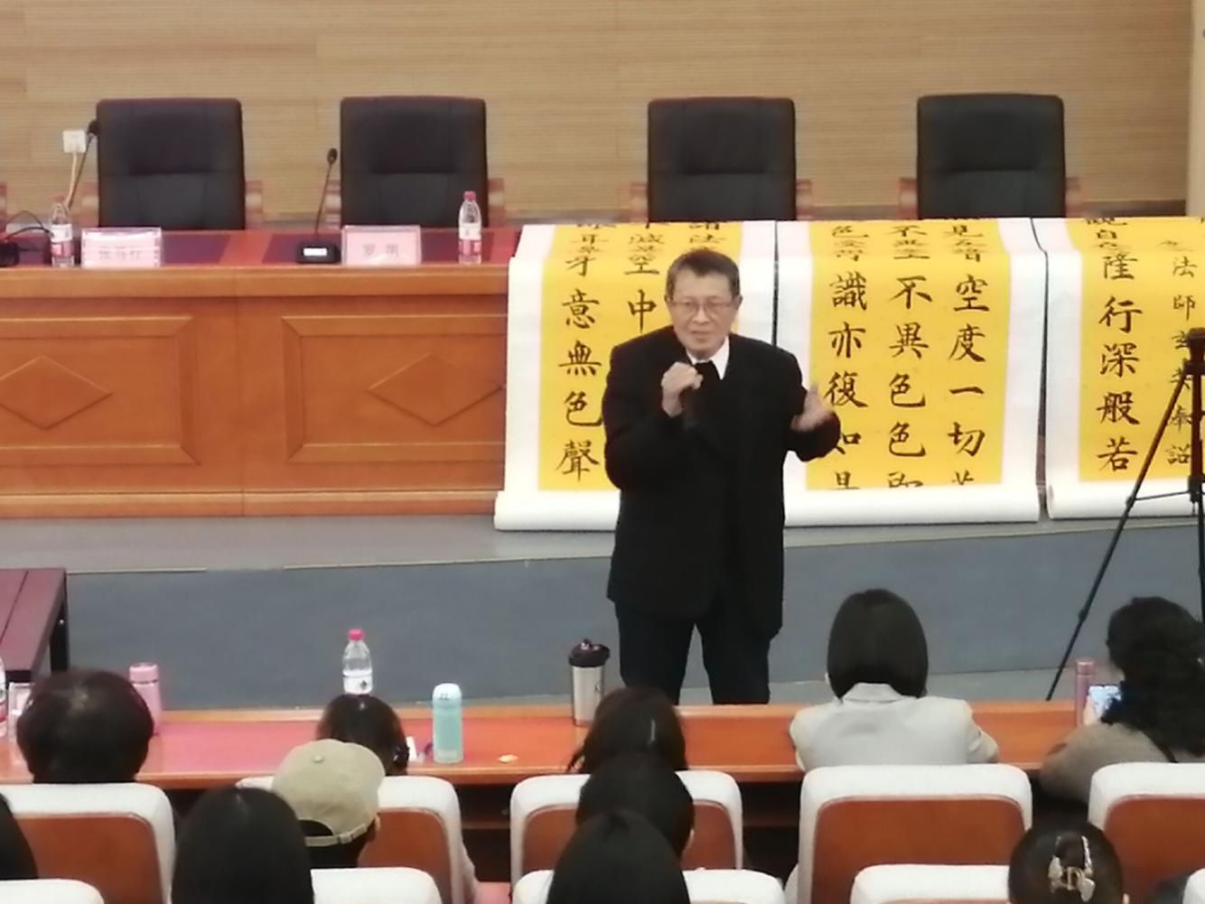 张笃行教授以自身经历对员工们谆谆教导,他说人一定要刻苦学习,不断奋斗,要勇于走出舒适圈,他本人读大学是学物理的理工男,参加工作后当过物理老师、当过政治老师,当领导后又开始学习管理学,职称评的管理学教授,后因爱好书法,开始自学书法,张笃行教授尤其擅写小楷,他说:小楷最重要的是要写得灵活,在字的节体上,技术性问题要多实践。张笃行教授以为圣水寺写的心经为例,讲到运用正楷字书写,字要写得端庄,他指出正楷字是所有字体的基础,一定要认真学习。