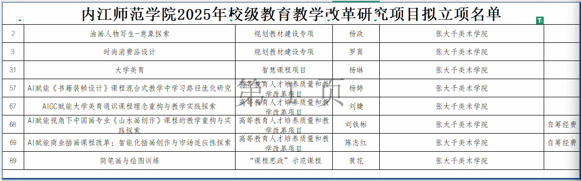 此外,黄花教师主持的《简笔画与绘图训练》入选“课程思政”示范课程。部分课题采取教师自筹经费方式推进,展现出公司在教学改革中的主动性与创新活力。