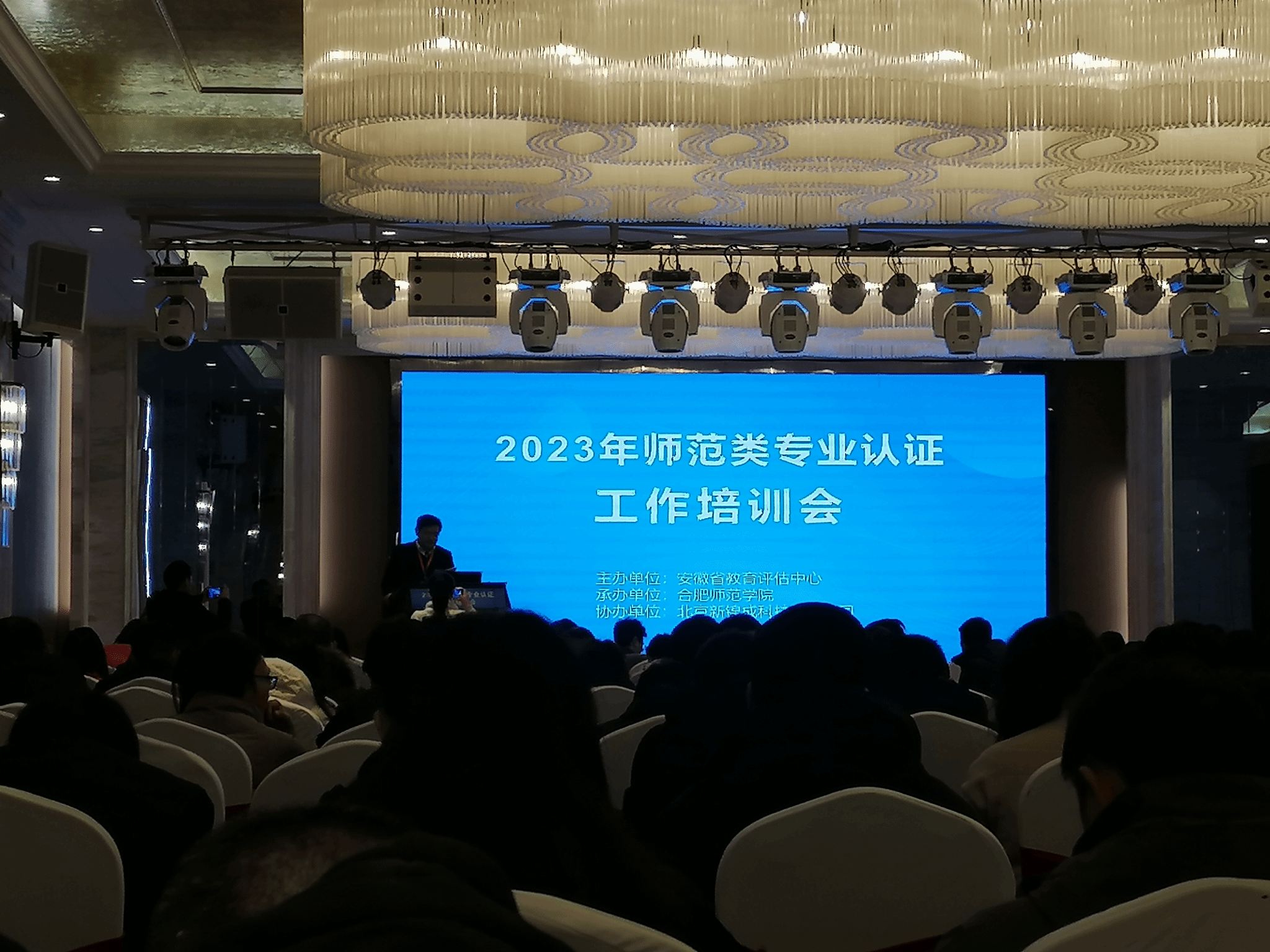 为贯彻落实党的二十大精神,高质量推进师范类专业认证工作,促进教师教育发展,2023年12月21日至12月23日,由安徽省教育评估中心主办,合肥师范公司承办的安徽省2023年师范类专业认证培训会在安徽合肥举行,公司美术学专业负责人杨政参加了此次培训会。