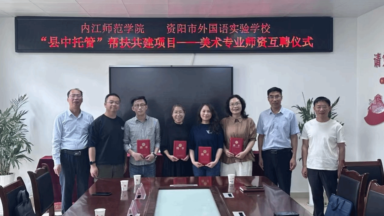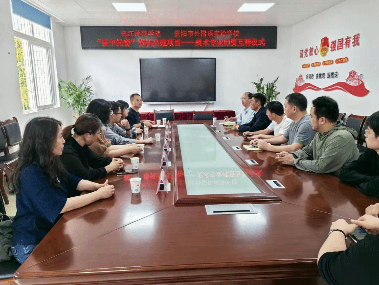 2024年6月4日,资阳外国语实验公司举行“县中托管”帮扶共建项目——美术专业团队互聘仪式,美术公司副经理罗真、理论教研室主任李伟,美术学教研室主任黄科又、段汶利副教授、张静副教授、李臣英教师以及资阳市外国语实验公司党总支书记江远光和美术教研室晏军,蒋鹏,林绪军等教师参加了聘任会。