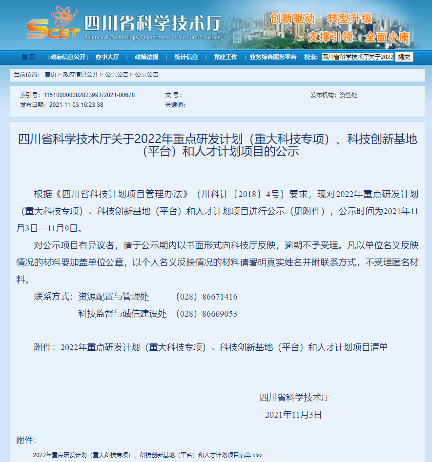 2021年11月3日,四川省科学技术厅根据《四川省科技计划项目管理办法》(川科计〔2018〕4号)要求,现对2022年重点研发计划(重大科技专项)、科技创新基地(平台)和人才计划项目进行公示。公司教授罗凯教师主持并申报的《成渝地区非物质文化遗产传统技艺保护与虚拟仿真创新路径研究》(项目编号:22RKX0322)获得四川省科学技术厅2022年科技创新基地(平台)和人才计划软科学项目批准立项。