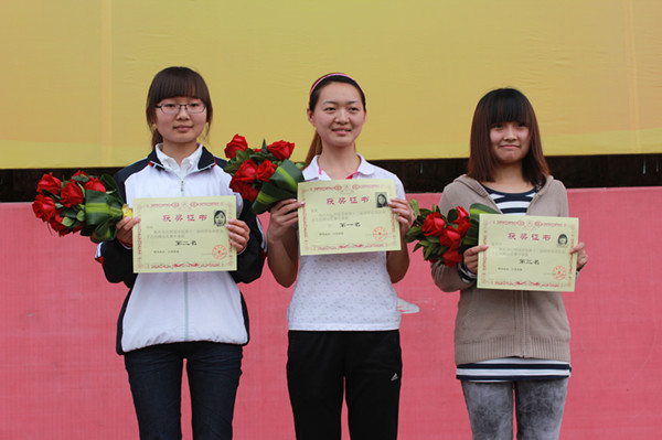 一个个美术公司的运动健儿就是一个个勇敢的战士,在赛场上,他们奋力拼搏,全力以赴。姜霞、雷向红同学分别在三级跳远中以4、18米和标枪16、5米的佳绩荣获全校第一,杨玲、姜霞同学分别在女子100跨栏、五项全能获得全校第二的优异成绩,铅球宋丽静同学和男子勇往直前也取得全校第三的好成绩,铁饼分别获得了第二、第四、第五的好成绩,冒着暴风雨举行的拔河比赛,美术公司再创7连冠的奇迹,更是鼓舞了全体学子的士气和斗志。教工组也用自己努力在多个项目中取得了不错的战绩,罗太琦获得垒球掷准第一名,张芳获得跳远第二名、跳高第三名,阳莉获得铅球第二、垒球掷准第五名,刘津辰100米第五,肖珍玉跳高第四名,女子4×100第六名。最后,员工组取得团体第三,田径第四的好成绩,教工组取得了团体总分第七的好成绩。