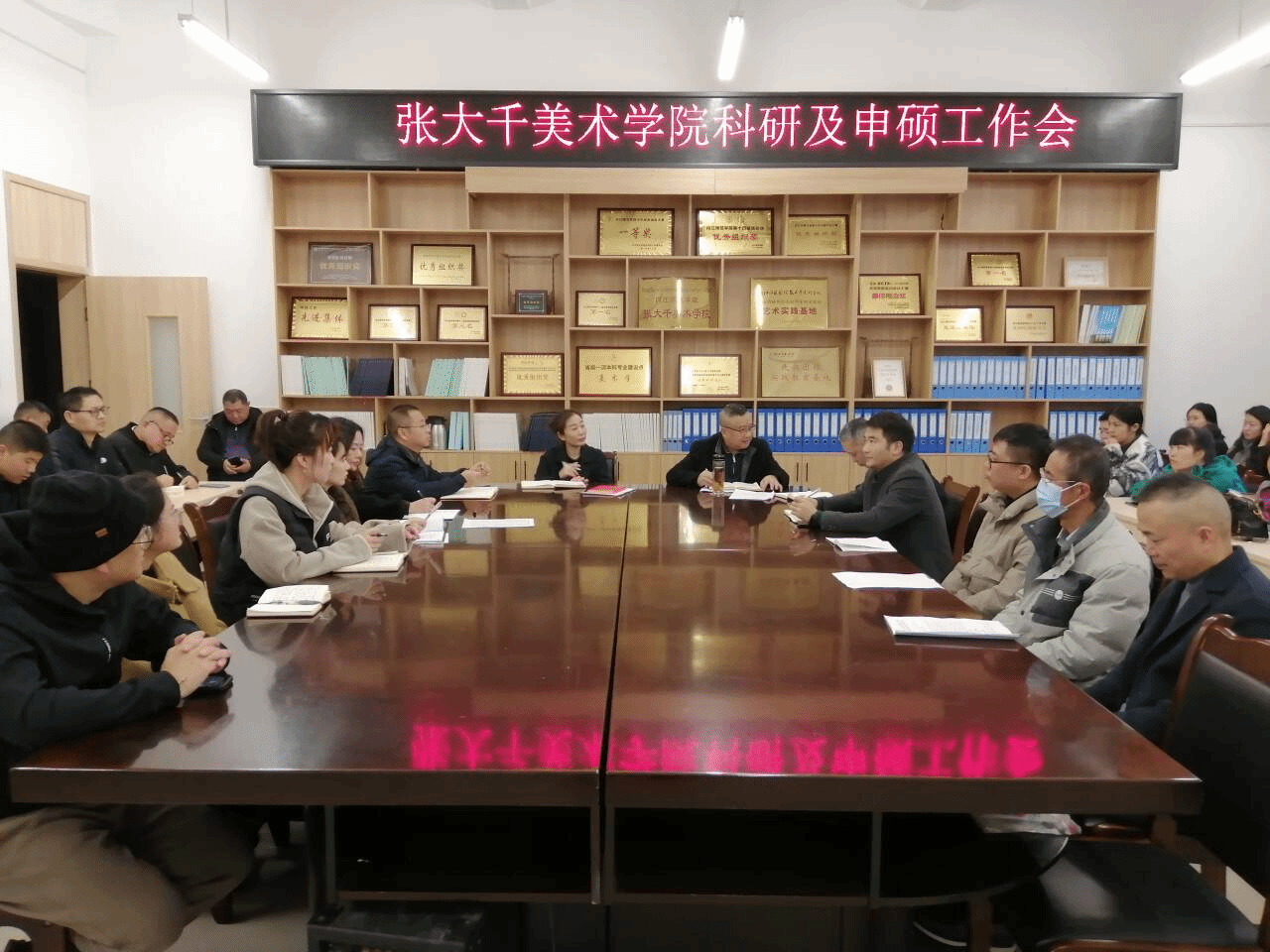 杨坤经理就团队队伍建设与保障工作、专职科研岗位设置与申报工作等做了详细说明,其中专职科研岗设置4个研究方向,定额不超过6人,重点围绕张大千艺术研究、地方非遗保护等领域组建科研团队。根据公司重点工作建设需求、公司科研工作攻关等事项进行了说明,希望教师团队围绕团队建设与硕士学位申请进行高水平成果建设。