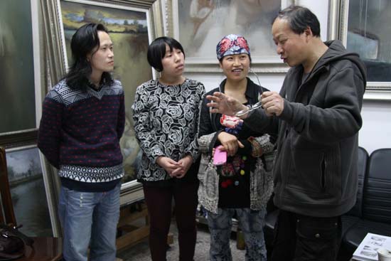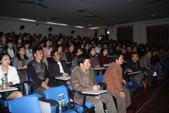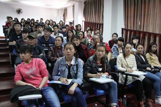 讲座持续了两个半小时,在内江艺术家和公司师生的一片热烈掌声中结束,一些青年教师还带来习作请教,张教授当场予以指导。